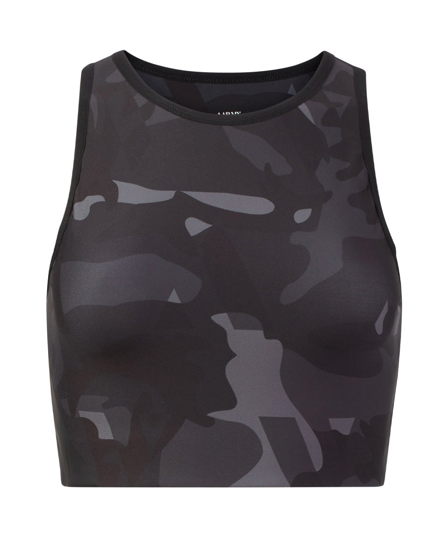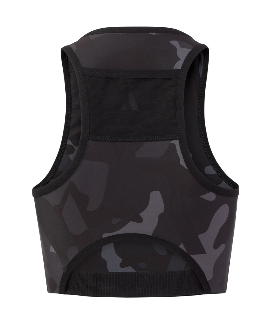 High neck sports bra with a reflective 'A' logo and mesh pocket on the back. Made with quick-drying breathable fabric, this high coverage sports bra keeps you covered and comfortable while you ascend.