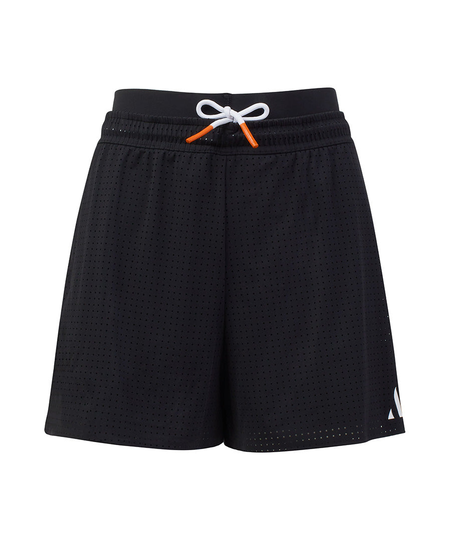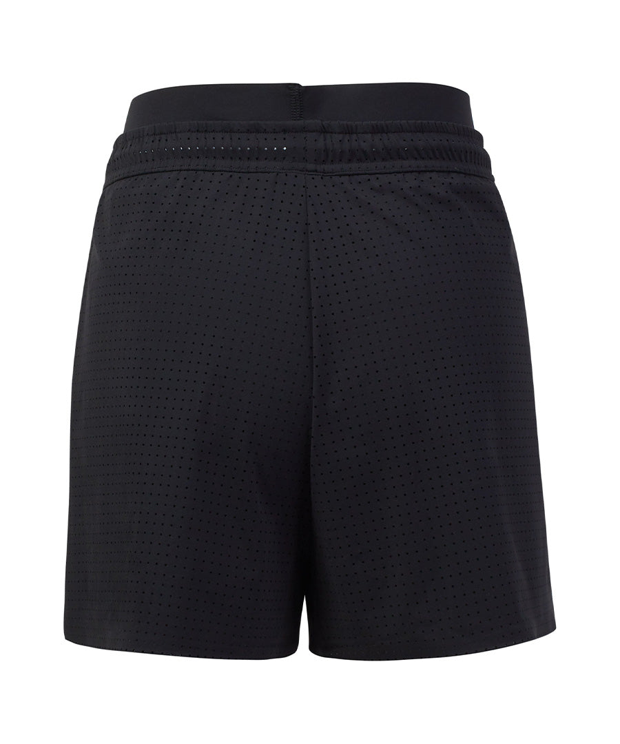 Lightweight layered mesh short with built-in compression and drawstring waist. The unique velvet trim design keeps the compression right where you want it while you lunge and burpee.