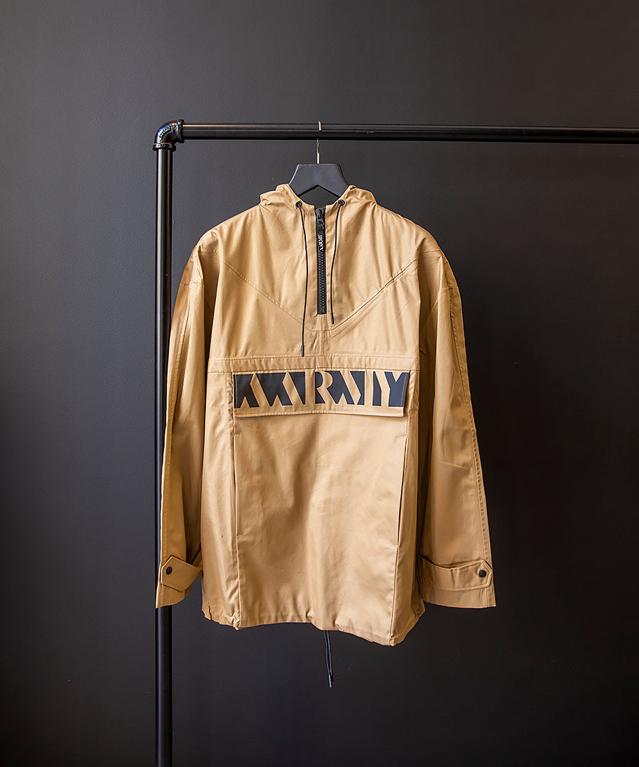 Features a zip neckline a piped pocket two side pockets and a flap adorned with a 'AARMY' signature. Fits true to size however those who are between sizes should take the smaller size. Designed for a relaxed fit. Drawcord hem for a flexible fit. Army-green and black cotton-gabardine.